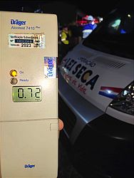 Ao todo, foram oito situações de alcoolemia, entre prisões, testes positivos e recusas ao etilômetro. O condutor preso tem as iniciais E. A. A. e 35 anos de idade. Ele fez o exame do bafômetro, com resultado de 0,72 mg/L. A polícia destacou que houve seis testes positivos, porém com resultado inferior ao de 0,34 mg/L, o que não terminou em prisão, e uma recusa ao teste.