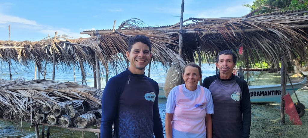 Ledinha, força feminina, com o filho Alyson e o esposo Manoel na Lagoa do Jequiá