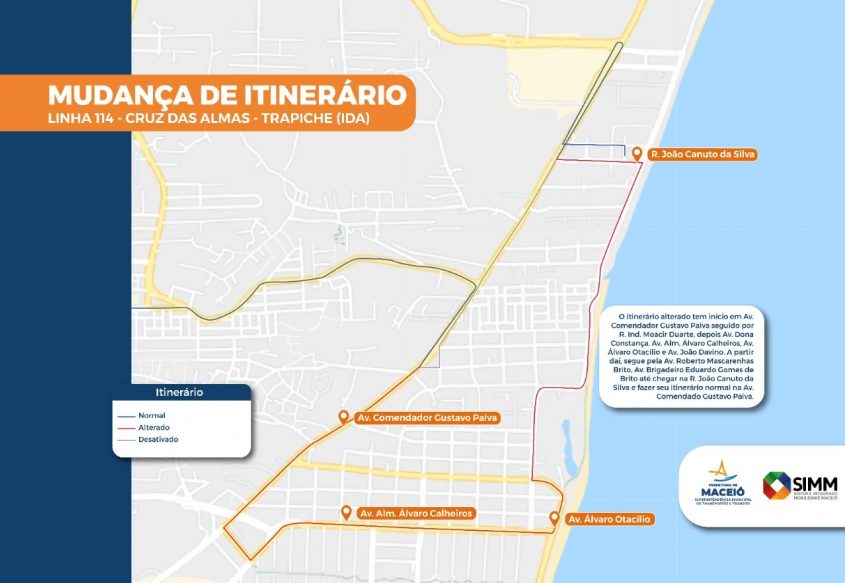 "A mudança é uma solicitação de usuários da linha, feita por nossos canais de comunicação. Fizemos as devidas avaliações e constatamos a necessidade de realizar a alteração", pontuou Paula Isanelle, diretora do Sistema Integrado de Mobilidade de Maceió (SIMM).