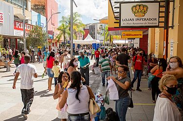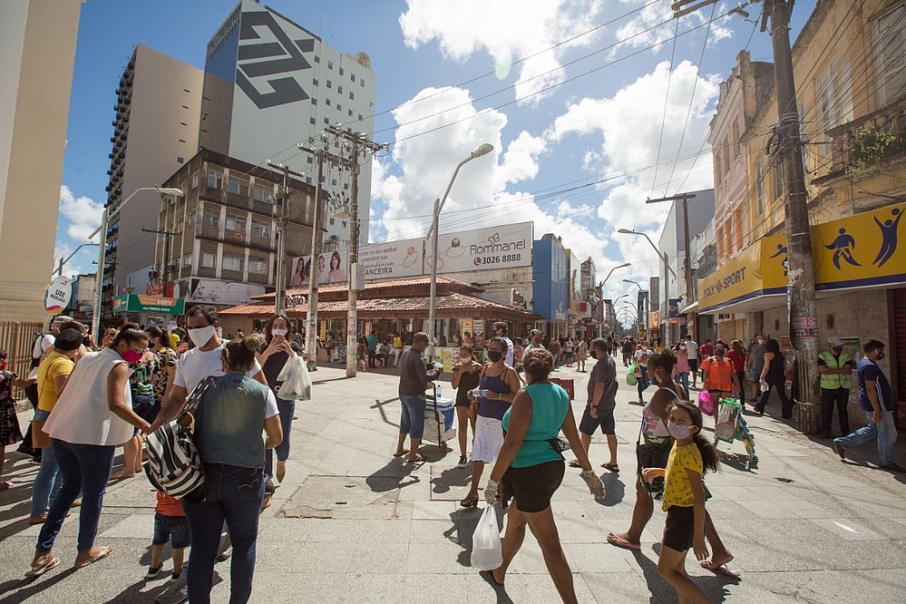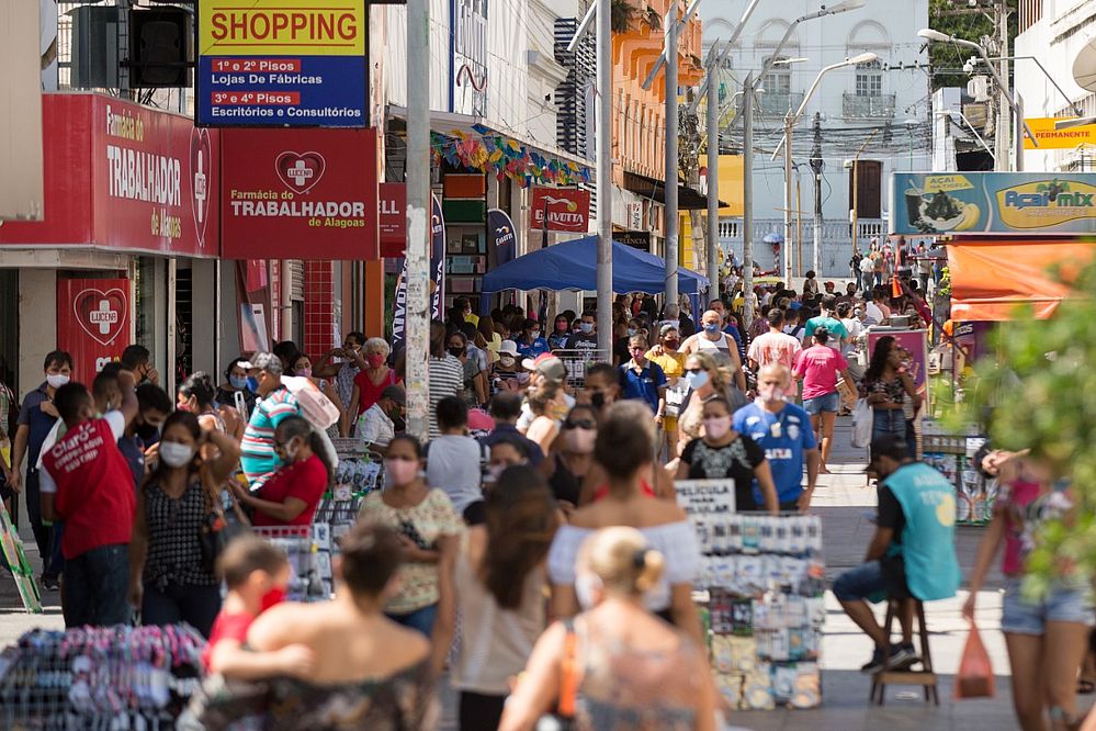 O primeiro dia de reabertura do comércio no Centro de Maceió, iniciado nesta sexta-feira (3), marcou o início da fase laranja do distanciamento social controlado no combate à covid-19 em Alagoas.