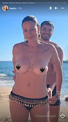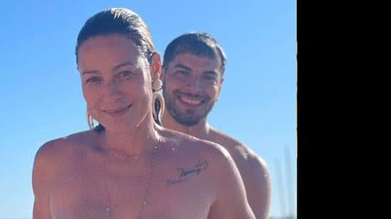 A atriz Luana Piovani, 45, publicou uma foto onde aparece fazendo topless em uma praia na companhia do namorado Lucas Bittencourt.