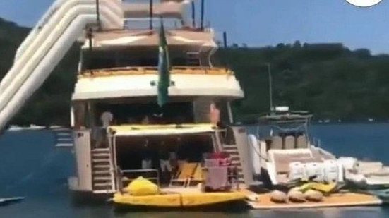 Luciano Huck foi filmado em um momento de diversão com a família em Angra dos Reis, na Costa Verde. O apresentador estava com os filhos e alguns amigos a bordo do iate que construiu em 2017 e que é avaliado em R$ 30 milhões, segundo o EXTRA apurou. O barco tem 4 suítes e 120 pés (quase 40 metros de comprimento), toboágua, uma lancha suporte, quatro pisos, duas cozinhas e até uma academia de ginástica.