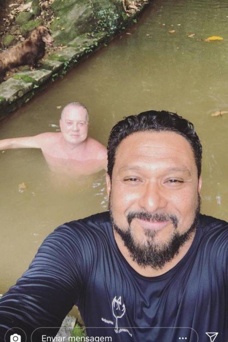Luiz Fernando Guimarães curte banho de rio com o marido no sítio do casal Foto: Reprodução/Instagram