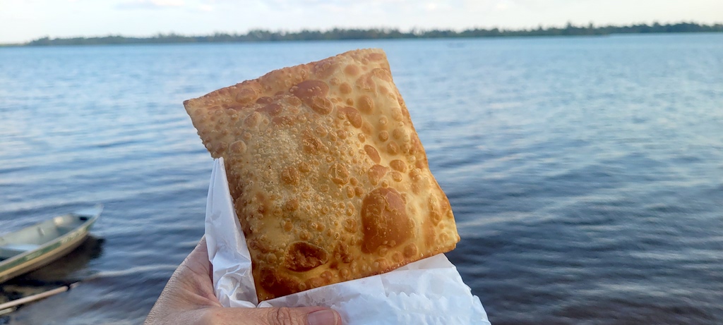 Comer pastel de siri com a melhor vista do Rio São Francisco