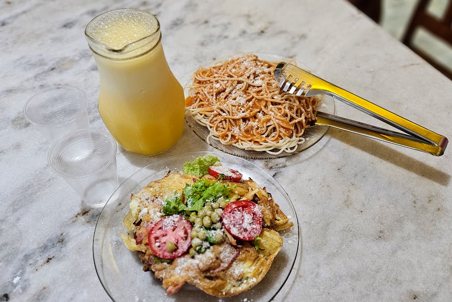 A Macarronada à Moda da Casa vem com omelete (ovo, presunto, parmesão e batata palha) e um bife à milanesa de responsa — minha favorita! Posso até passar um tempo sem aparecer, mas quando volto, o padrão de sabor e qualidade continua o mesmo. Uma maravilha! Gostou? Então vem comigo conhecer essa história no número 234 da Rua Manoel André (ou Rua Manus, como a gente chama), no Prado. Ah, e aproveita para provar o suco de laranja, que é danado de bom.