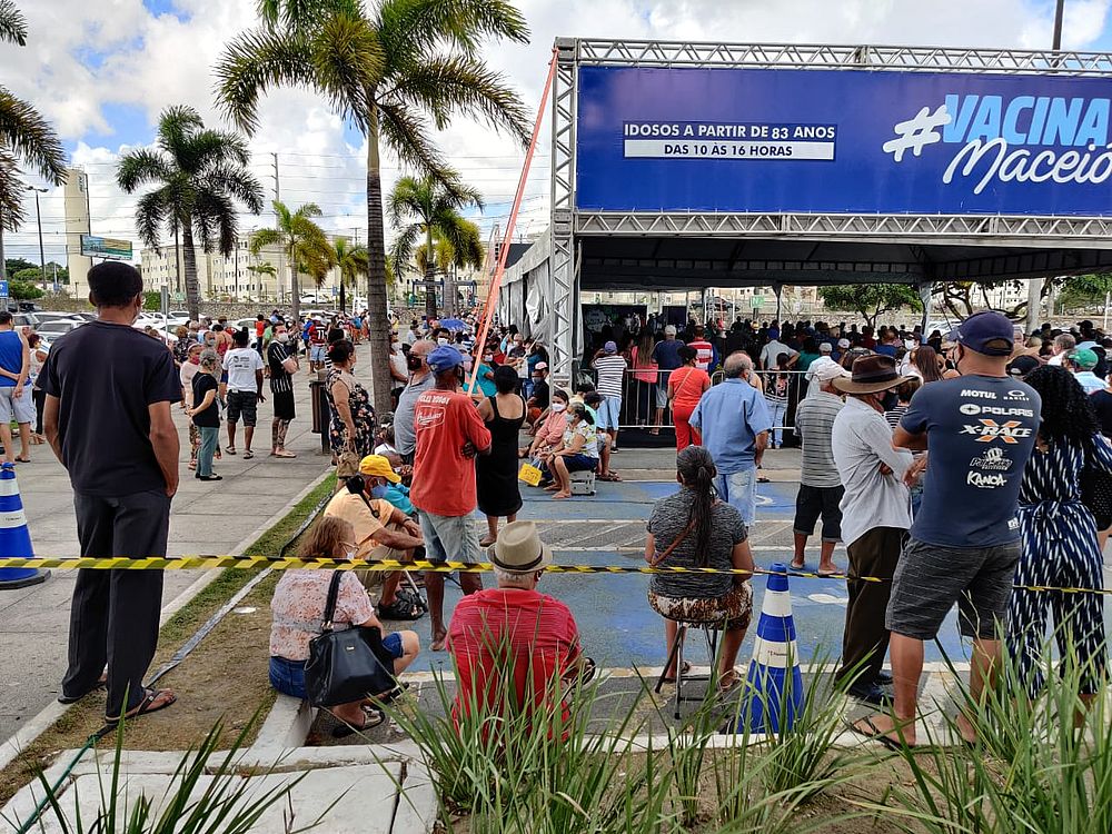 Os seis pontos de vacinação de Maceió tiveram uma grande procura de usuários na manhã desta sexta-feira, 19. Hoje, a prefeitura da capital iniciou a imunização de idosos a partir de 72 anos. A expectativa é de que a busca pela vacina diminua durante a tarde.