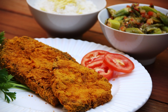 Mas aposte no Fufunha. Segundo nossa chef Vera Moreira, esta receita tem todos os ingredientes da culinária afro: inhame, gengibre, dendê. E o prato é muito legal, as postas de arabaiana são temperadas apenas com sal, envolvidas em farinha de mandioca e fritas no azeite dendê, formando uma crosta bem apetitosa. O inhame é cozido, ralado, depois vai ao fogo pra ficar na textura de farofa, acrescidas minis lascas de gengibre. Show é a salada do quiabo, que não tem baba, é cozido e temperado com o vinagrete e, de tão bom, come-se sozinho.