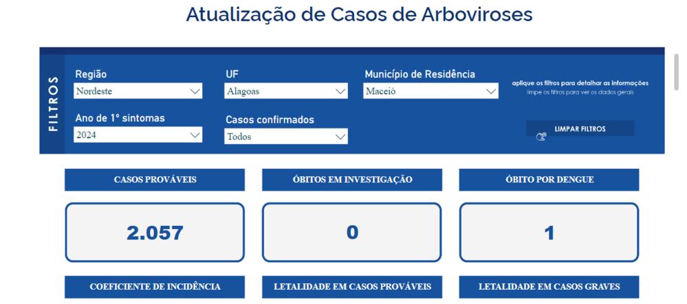 De acordo com os dados do Ministério da Saúde, até o momento, cerca de 2.057 casos prováveis da doença foram confirmados na capital alagoana. Com a confirmação de mais um óbito, Alagoas chega ao total de quatro mortes por dengue desde o início do ano.