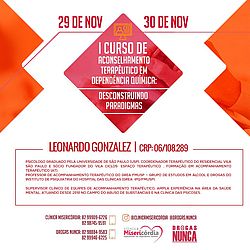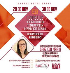 Dias 29 e 30 de novembro, sexta-feira e sábado, Maceió seria o I curso de aconselhamento terapêutico em dependência química: desconstruindo paradigmas