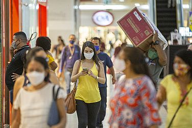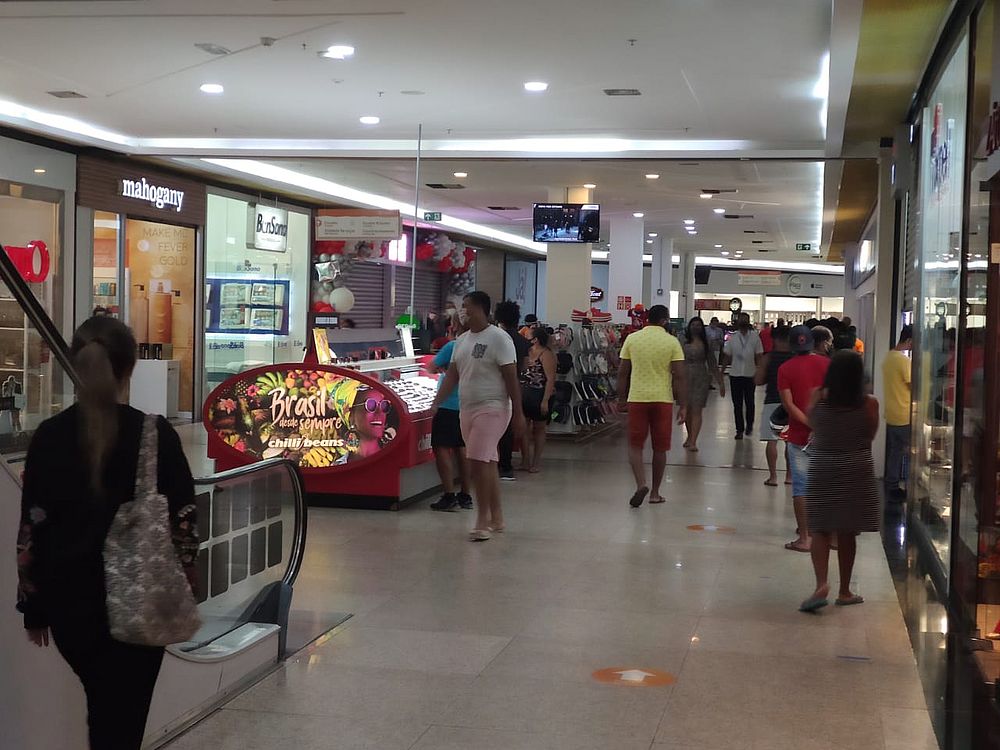Nas dependências do shopping, segundo logistas ouvidos pelo TNH1, a dificuldade é de o cliente seguir as orientações sanitárias, com o distanciamento de 1,5 entre as pessoas.
