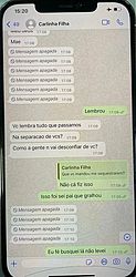 Em outra conversa, a filha de Cíntia, Carla Mariano Rodrigues, pergunta: “Mãe, você lembra tudo que passamos na separação de vocês? Como a gente não vai desconfiar de você?”. Ela, então, responde: “Não, Cá, fiz isso, isso foi seu pai que gralhou. Eu só busquei lá, não levei”. Entre as mensagens, diversos textos foram apagados do celular e não foram recuperados pelo software israelenese Cellebrite.