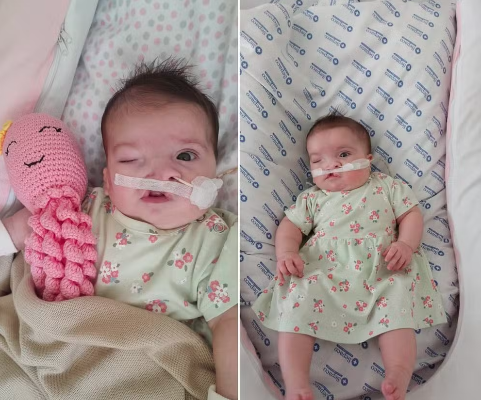 Flora, que nasceu com complicações, passou por várias internações e cirurgias, incluindo uma parada cardíaca antes de sua primeira cirurgia, mas se recuperou bem e atualmente recebe acompanhamento multidisciplinar.