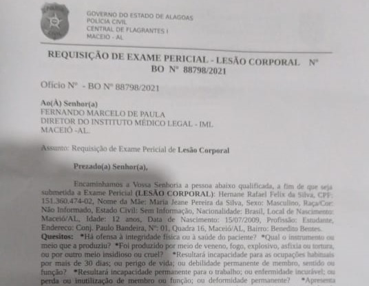 Na delegacia, porém, Maria Geane Pereira - que também pretende apresentar uma reclamação junto à Equatorial Energia para solicitar esclarecimentos sobre o episódio - foi orientada a levar o pequeno Rafael até o Instituto Médico Legal (IML), para a realização do exame de corpo de delito (foto abaixo), para só então fazer o Boletim de Ocorrência (BO).