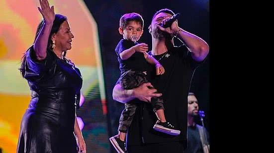 Pela primeira vez, o filho de Marília Mendonça e Murilo Huff, Léo, de dois anos, participou de um show do pai, em Goiânia. Na noite deste domingo (24), a mãe da cantora levou a criança no palco e se emocionou com o carinho do público. Ao som de "De Que...