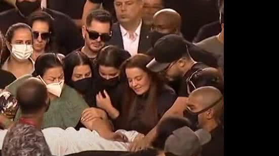A mãe de Marília Mendonça, Ruth Dias, foi consolada por Maiara e Maraisa no velório da filha, no começo desta tarde (6) no Ginásio Goiânia Arena. A cantora será velada até as 16h, quando o corpo será levado em cortejo até o Cemitério Parque Memorial para cerimônia restrita às 17h30. O caixão trazendo Marília chegou ao ginásio por volta do 12h emocionando os fãs que formam uma longa fila para darem adeus à "Rainha da Sofrência".