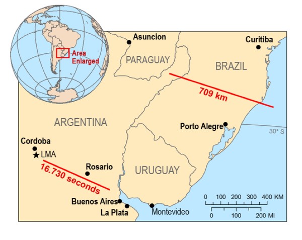 O recorde de raio com duração mais longa é da Argentina: Ele durou 16,73 segundos a partir de um flash que começou no norte da Argentina, em 4 de março de 2019. Ele também é mais que o dobro do recorde anterior, de 7,74 segundos registrado em Provence-Alpes-Côte d'Azur, França em 30 de agosto de 2012.