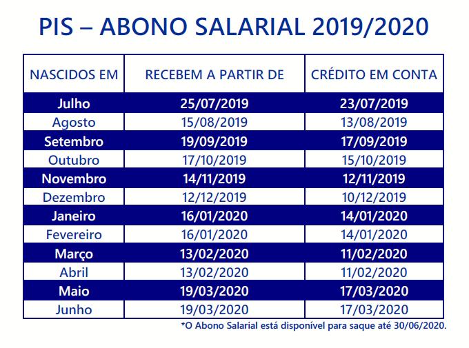 O valor do benefício pode ser sacado até 30/06/2020 e pode ser consultado no Aplicativo CAIXA Trabalhador, no site da CAIXA (www.caixa.gov.br/PIS) ou pelo Atendimento CAIXA ao Cidadão pelo 0800 726 0207.