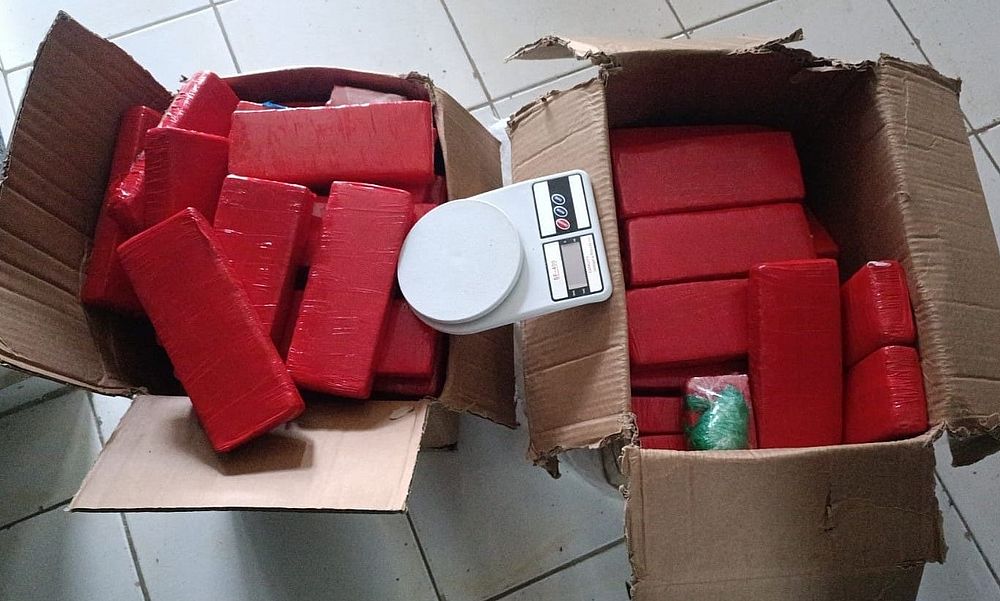 A PM destacou que nada de ilícito havia sido encontrado com o homem no momento da abordagem, porém, através do portão aberto da residência, foi possível visualizar na área da casa duas caixas com tabletes vermelhos. Questionado, o suspeito informou ser maconha e assumiu a posse do material para distribuição.