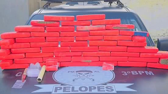 "As equipes do Pelopes 01 e 02, em conjunto com o setor de inteligência do 3° Batalhão de Polícia Militar de Alagoas, estavam em posse da informação do mandado de prisão em aberto em desfavor do suspeito", iniciou a Polícia Militar ao destacar também que o homem que estava com a maconha já havia sido preso em 2014 pela posse de 456 quillos da mesma droga, no estado do Mato Grosso do Sul.