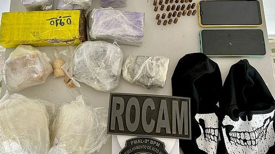 Ao todo, segundo a polícia, foram recolhidos 2,9 kg de maconha, 1,5 kg de crack, e 875 g de cocaína. Além das drogas, a PM apreendeu duas balanças de precisão, dois celulares, duas balaclavas, um revólver de calibre 32, e 38 munições.
