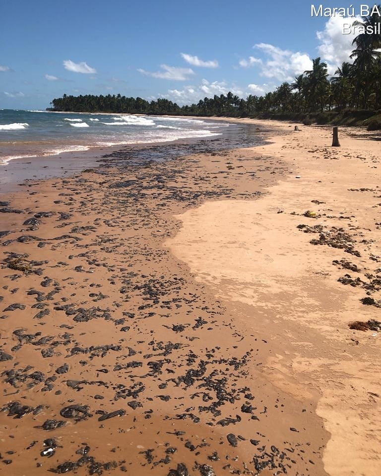 Novas manchas foram encontradas na praia do Cassange, localizada na Península de Maraú, no sul da Bahia. O Local foi limpo na manhã deste sábado (9) e nas imagens registradas é possível ver a quantidade de sustância na região.