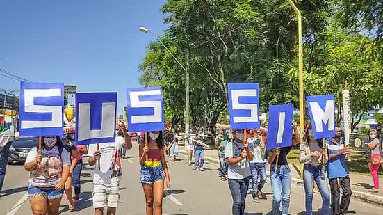 Organizadores da mobilização recomendaram que os participantes mantivessem distanciamento social, usassem máscaras e levassem álcool em gel.