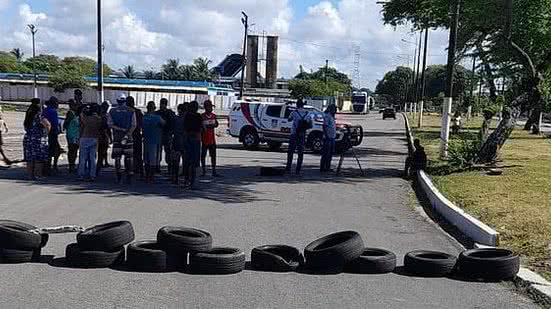 Moradores da comunidade Muvuca realizam um protesto próximo ao Papódromo, no Vergel do Lago, em Maceió, na manhã desta quinta-feira, 29. Um trecho da Avenida Senador Rui Palmeira foi bloqueado com pneus durante o ato, que teve início por volta das 8h.