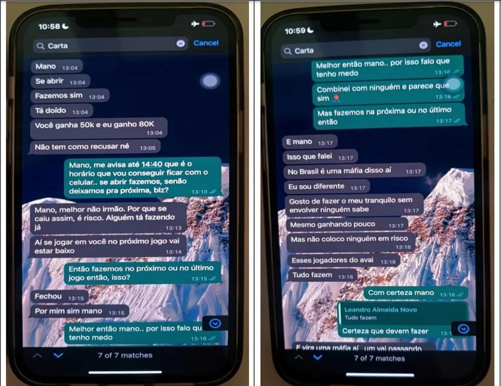 Na sequência da conversa, o jogador do Peixe propõe deixar o esquema de levar um cartão amarelo para outro jogo, na sequência do Brasileirão. Só que o apostador insiste em Santos x Avaí.