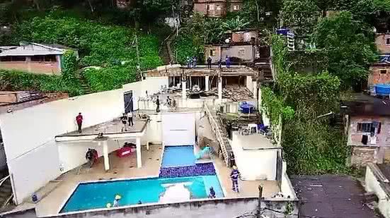 O imóvel tinha uma área de lazer com uma piscina com três metros de profundidade, com escorrega, e mais de 100 mil litros de água. Segundo a Seop, isso aumentou o peso da construção, gerando instabilidade. A piscina também tinha uma decoração azulejada, com iluminação instalada na parte interna e cascata, que também foi demolida na ação. Técnicos da secretaria destacam que a estrutura deixou clara a intenção de realizar uma construção de grande porte.