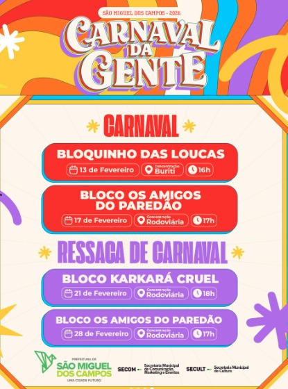 São Miguel dos Campos: A cidade conta com dois grandes blocos para fazer a festa sendo um na sexta-feira e outro na terça-feira.