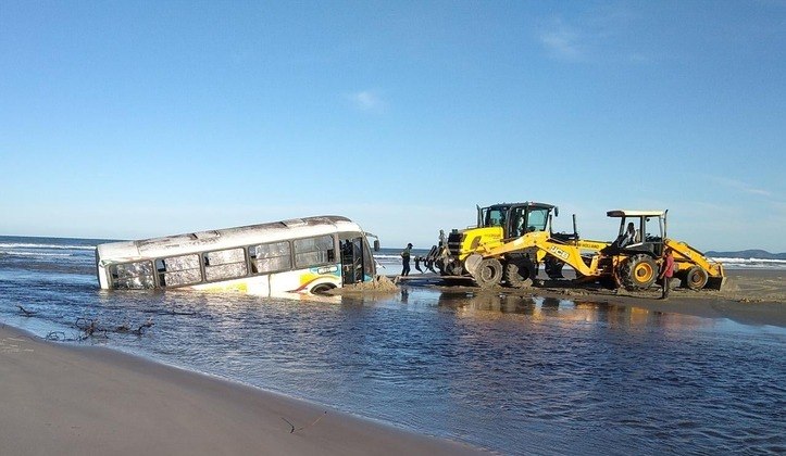 Durante o período de espera, ainda segundo informações da cidade, o ônibus foi encoberto em 80% pelo mar. O trecho pela faixa de areia na praia entre Boqueirão Sul e Pedrinhas tem o trânsito permitido, já que não há acesso alternativo.
