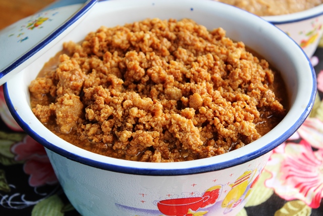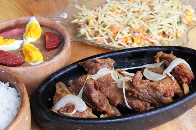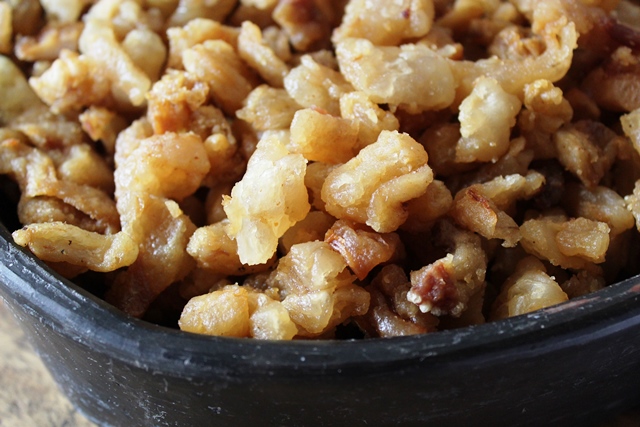 Panela de ferro – O torresmo é uma das beldades da casa, bem sequinho e crocante, ele é frito em um tacho na banha de porco.