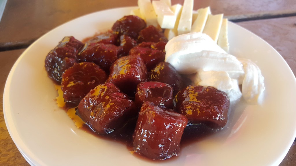 Sobremesa: doce de banana caseiro com queijo coalho e creme de leite
