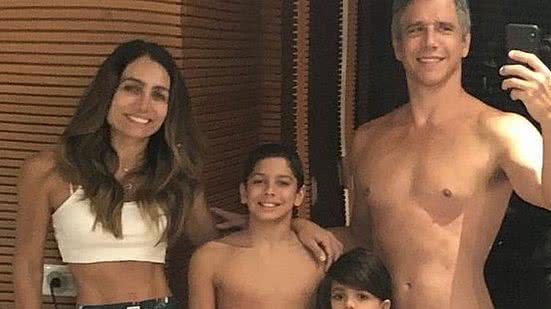 Márcio Garcia publicou, na noite de hoje (05/08), um registro ao lado de sua mulher, Andrea Santa Rosa, e dois de seus filhos, Felipe e João.