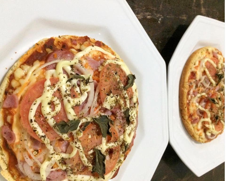 Massa – As pizzas merecem toda atenção. Feitas com creme de arroz e polvilho doce, é uma ótima opção e são boas, massa fina e gostosa