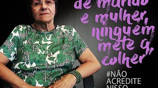 Maria da Penha está participando da campanha por meio de uma arte criada para as redes sociais do Ministério Público. Nesse card, a farmacêutica aparece sentada, com uma frase ao seu lado de cunho machista e que incentiva a violência. “Em briga de marido e mulher ninguém mete a colher”, foi a expressão escolhida por ela. A ideia é chamar atenção para o conteúdo da frase que, logo abaixo, é desmentido pela hashtag #NãoAcrediteNisso. “Nós quisemos usar frases já conhecidas pelo grande público que, talvez, nem perceba o quanto elas são carregadas de agressividade, preconceito ou de uma passividade que não deve jamais existir. E, após chamar atenção para essas expressões, desconstruí-las, mostrando que ninguém deve acreditar nelas. Aliás, muito pelo contrário, é preciso se indignar”, afirmou o procurador-geral de justiça, Alfredo Gaspar de Mendonça Neto.