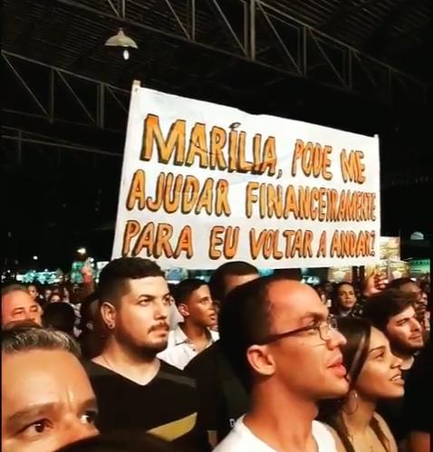 Durante a sua apresentação, Marília avistou um cartaz enorme em que dizia: "Marília, pode me ajudar financeiramente para eu voltar a andar?".