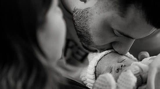O pai compartilhou a mesma imagem e escreveu: "Me falaram que quando ele nascesse seria a mesma sensação de arrancar meu coração do peito e segurar no braço. E foi exatamente isso".