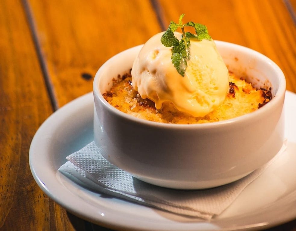 Para adoçar a vida, o clássico: cocada cremosa de forno com sorvete de creme e calda caramelo, o docinho necessário para ser feliz.