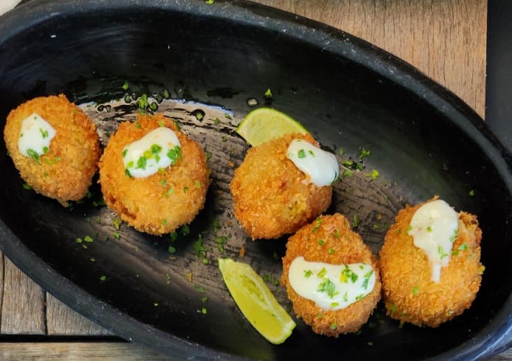 Bolinho de siri, uma das estrelas do Stella Marina na Barra de São Miguel