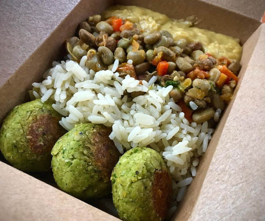 Para quem busca uma dieta saudável sem adição de carnes, pode ficar feliz, na sexta-feira tem a marmita quentinha, mas é preciso fazer reserva antecipadamente na quinta-feira. E assim provei o baião-de-dois com fava agroecológica e salsicha vegana. Estava bom? Não, se amostrava, e não senti falta da carne. Para acompanhar, veio purê de cenoura caramelizada e salada de alface, acelga e tomate cereja. Bom, quem leva mais sabor para o nosso doce lar é a Veggo Mcz (@veggo.mcz), um delivery 100% vegano.