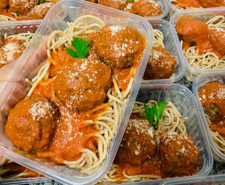 Almôndega funcional ao molho de tomate artesanal com espaguete integral