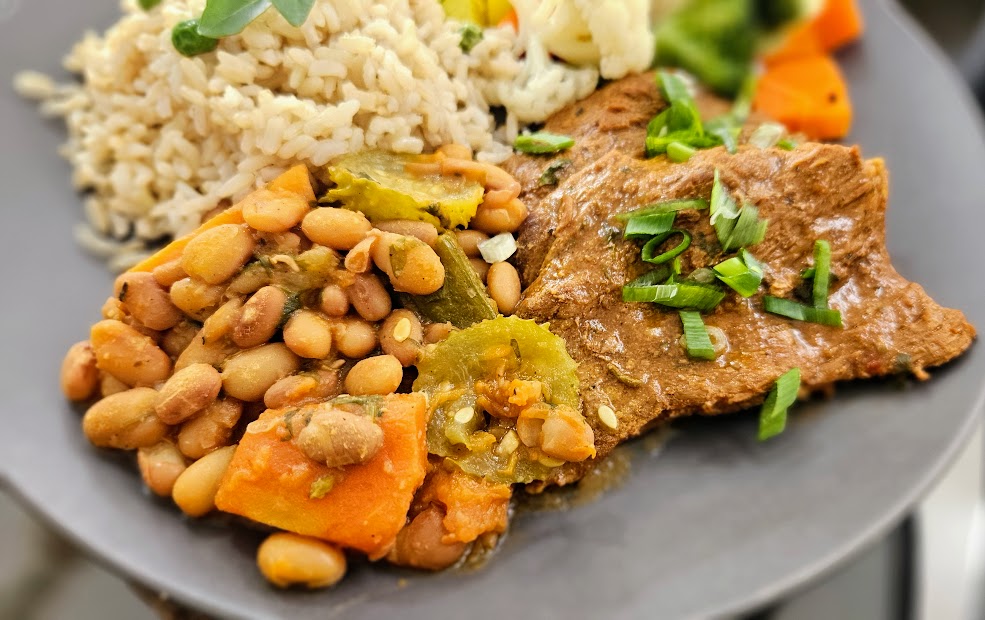 Feijão com arroz e bife de panela com sabor e poucas calorias