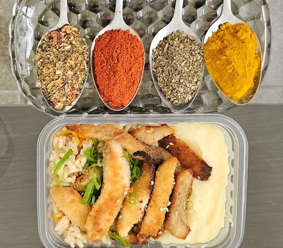 A marmita Saute Cozinha Saudável é de tamanho ideal para uma pessoa, e o melhor: Allana adapta de acordo com a necessidade nutricional do cliente. Por exemplo, eu não quero arroz, então vem legumes, purê… Provei frango e carne, ambas são bem temperadas para comer bem e feliz. E também o bobó de camarão é feito com creme de macaxeira e leite de coco natural.