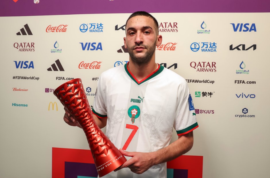 Craque do jogo - Maestro do ataque do Marrocos, Hakim Ziyech foi eleito pelos torcedores como o melhor jogador de Bélgica x Marrocos. O meia-atacante chegou a marcar um gol que acabou anulado, mas seguiu conduzindo o time e, aos 47 minutos do segundo tempo, deu a assistência para o gol que definiu o placar.