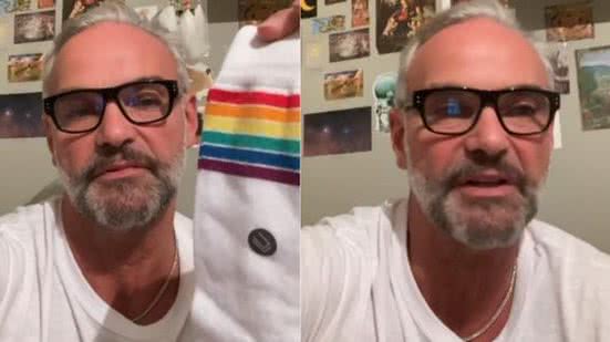 O ator, de 53 anos, fez a postagem em resposta às críticas que recebeu por exibir uma meia com as cores do arco-íris, um dos símbolos da causa. O ex-participante de "A Fazenda 12" refutou as afirmações de que estaria usando o acessório para "ganhar seguidores", contando que suas filhas, de 14 e 13 anos, são bissexuais.