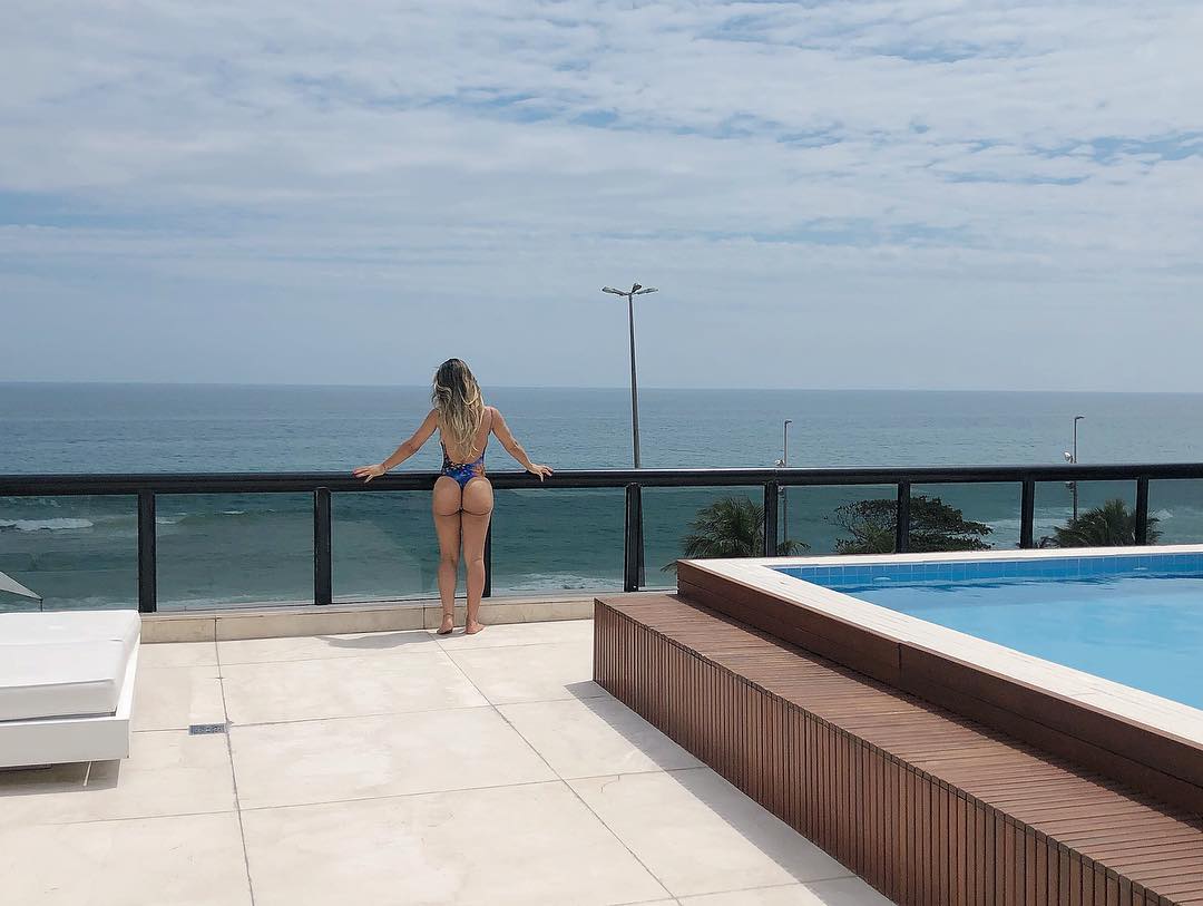 A musa fitness Mayra Cardi chocou os internautas após postar em sua rede social fotos na piscina no último final de semana.