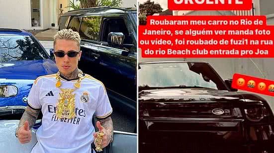 "Urgente. Roubaram meu carro no Rio de Janeiro. Se alguém ver [sic] manda foto ou vídeo. Foi roubado de fuzil na rua do Rio Beach Club, entrada paro Joá", iniciou o cantor que teria chegado ao Rio de avião e estaria esperando o carro, levado pelos seus seguranças de São Paulo para a capital fluminense.