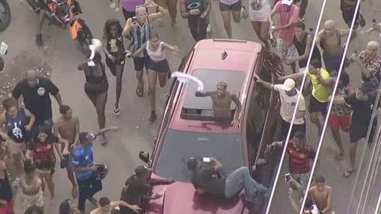 Cerca de 40 minutos antes de Poze sair, MC Oruam, filho de Marcinho VP, subiu em um ônibus, sapateou e causou um início de tumulto. A polícia usou balas de borracha, porretes e gás lacrimogêneo para dispersar quem tentava subir nos coletivos. Oruam desceu do ônibus e foi protegido pela população.