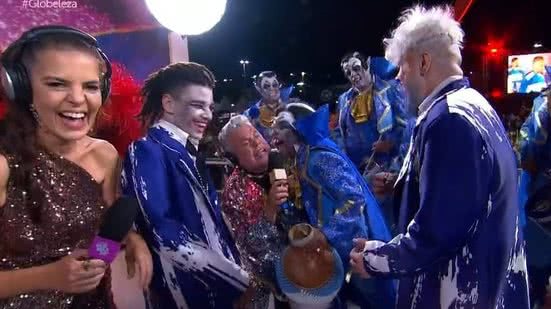 Na transmissão dos desfiles das escolas de samba de São Paulo, o comentarista viveu outra situação inusitada ao ser engolido por carnavalescos no fim do desfile da Gaviões da Fiel, na madrugada de domingo (2).